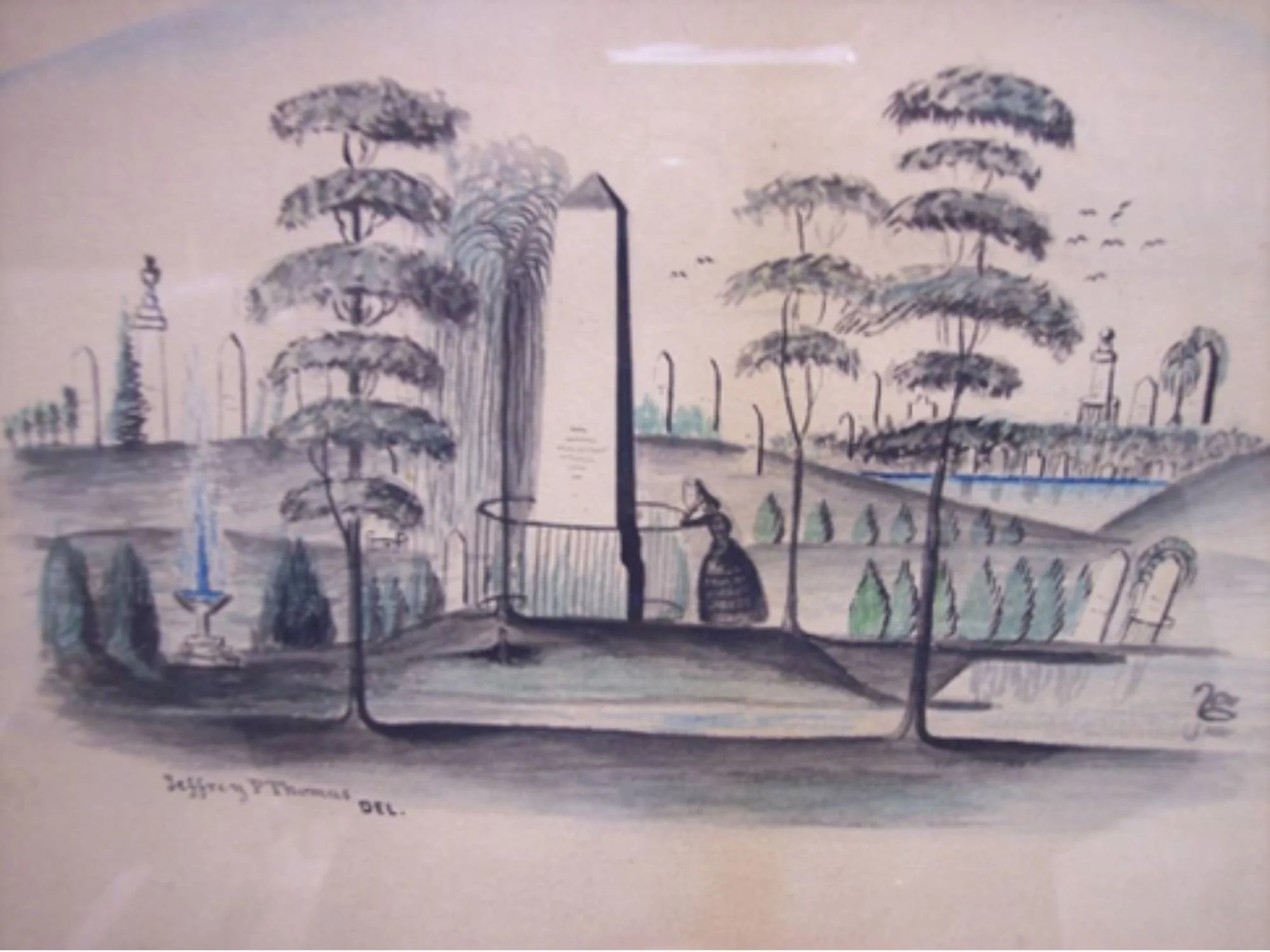 Watercolor illustration from the map of the Jonesville Cemetery, drawn by Jeffery Thomas, 1864